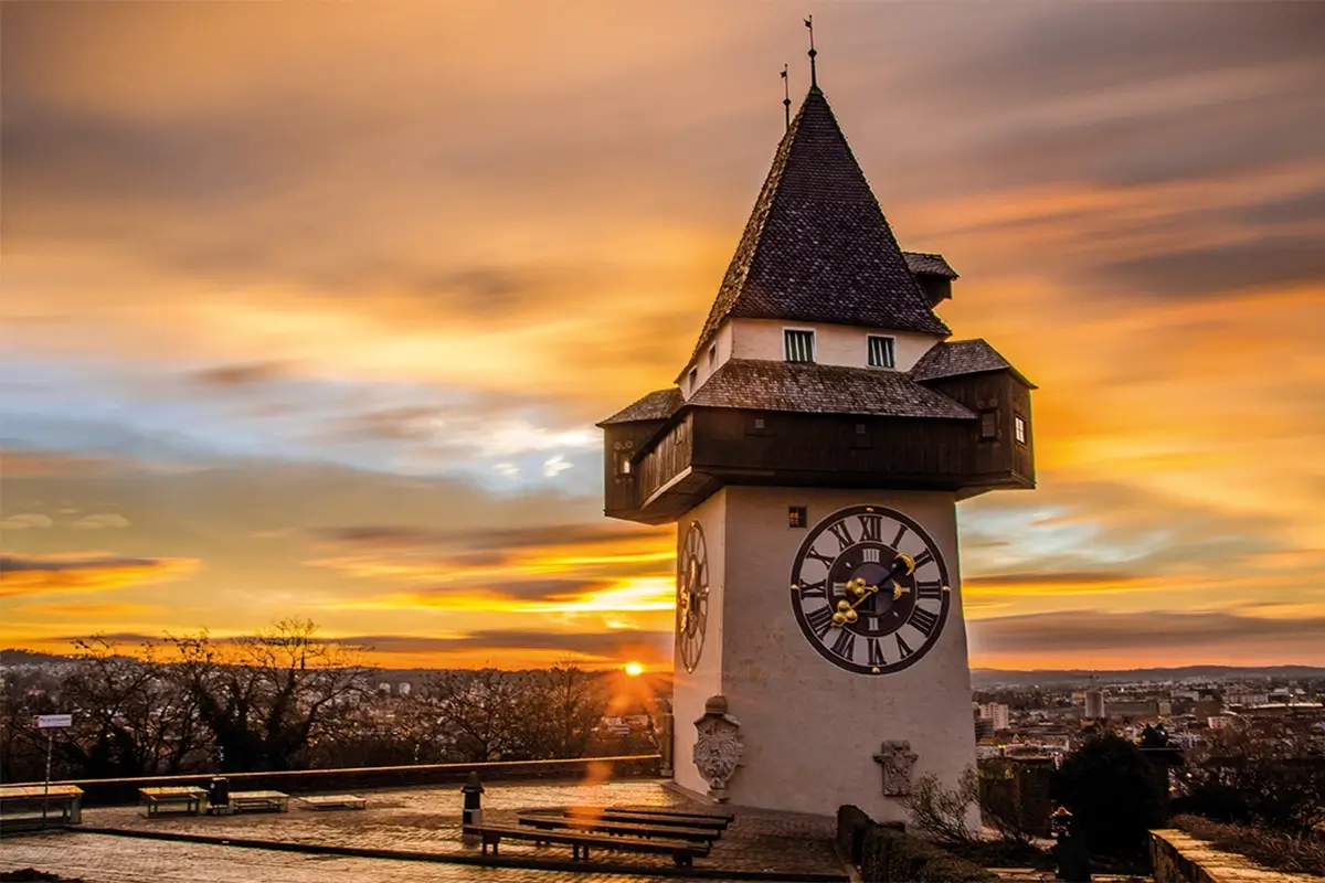 Austria’s second-largest city is the capital of Steiermark (Styria). Graz sits on the River Mur and is famous for its UNESCO World Heritage Status Mediterranean-esque Old Town. It is a relaxed city with a Mediterranean vibe and a modern cultural hot spot with its beautiful historical centre and a kaleidoscope of influences from the Baroque to the Renaissance, Art Deco and Medieval.
