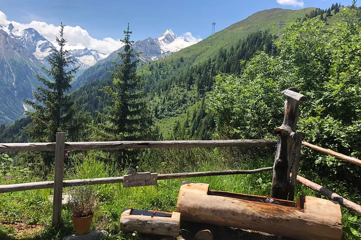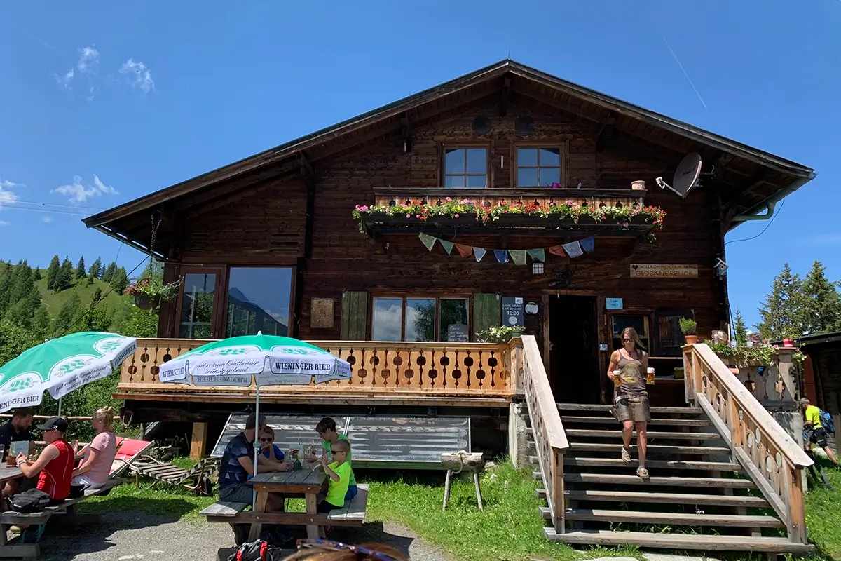 Just a short walk down from Glocknerblick, you’ll reach the Maiskogel Alm Ranch (1545m). This hut features a sunny terrace with stunning views of the Steinernes Meer Mountain Range and the Hohe Tauern Mountains.