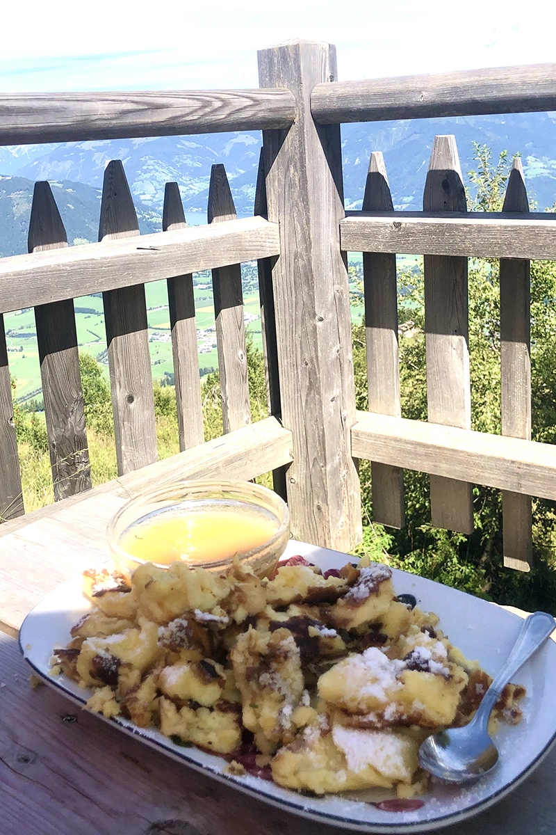 Kaiserschmarrn – The King’s pancakes – fluffy cut up pancakes sprinkled with poweder sugar and served with apple sauce- a dessert worthy of a main course.