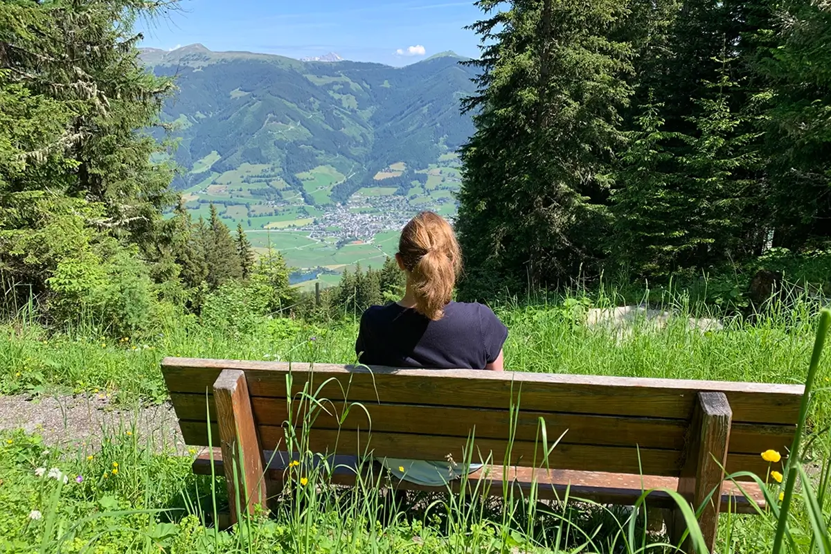 Left: Taking a rest with the views of Piesendorf Right: View arriving at Unterbergalm