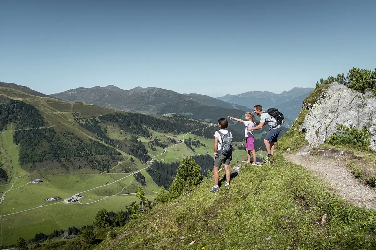 Enjoy a variety of scenic day hikes accessible from the panoramic alpine road, with views across the Zillertal Valley and peaks of the Tux Alps.